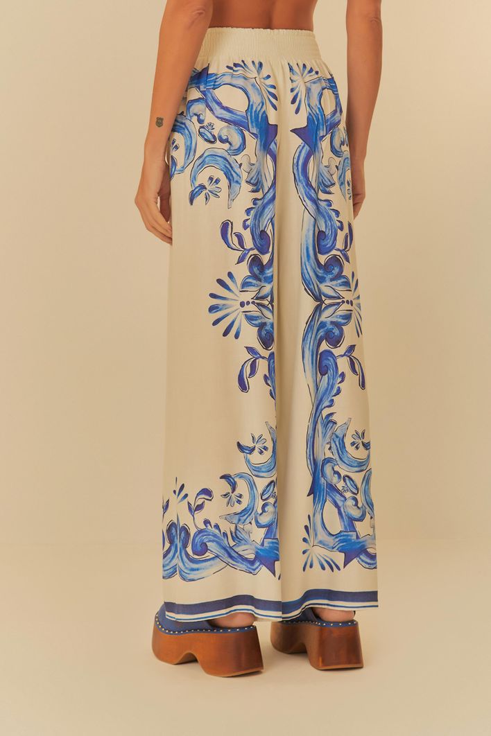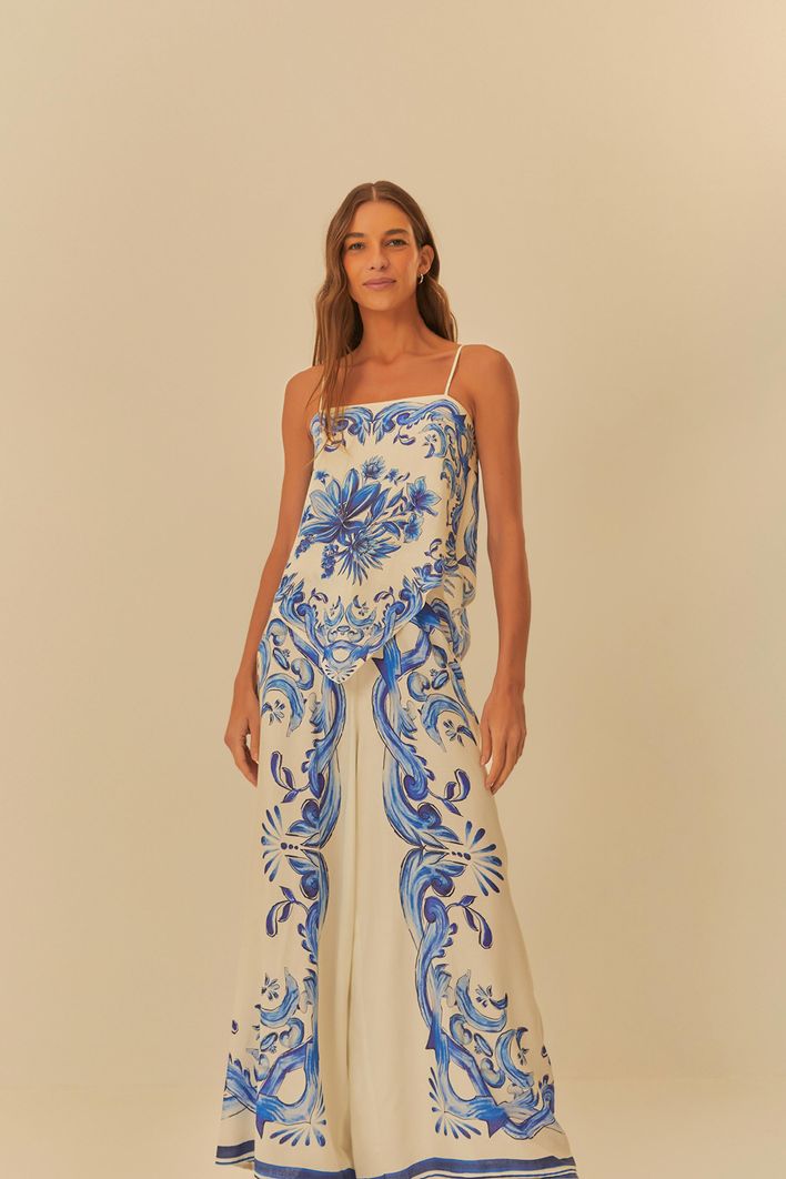 conjunto calça pantalona estampada lenço azulejo