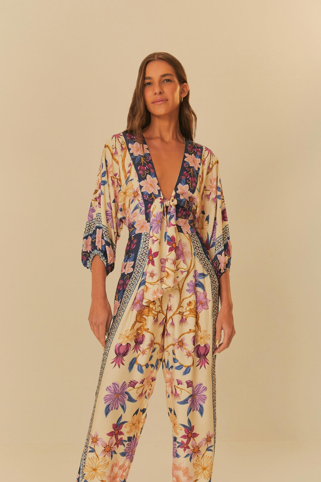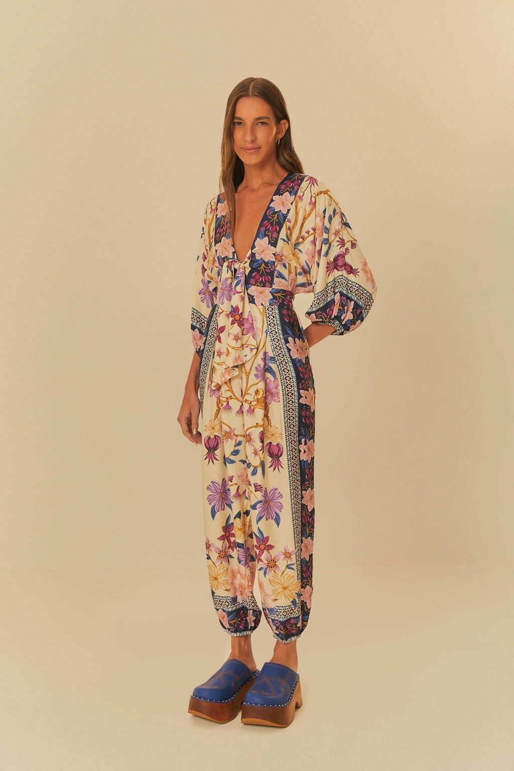macacão estampado delicadeza floral
