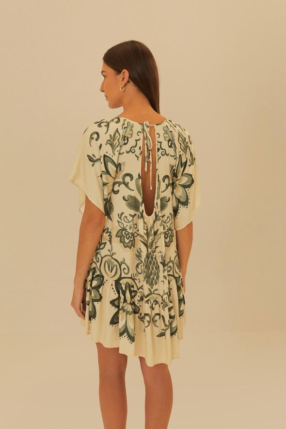 vestido curto estampado aquarela tropical